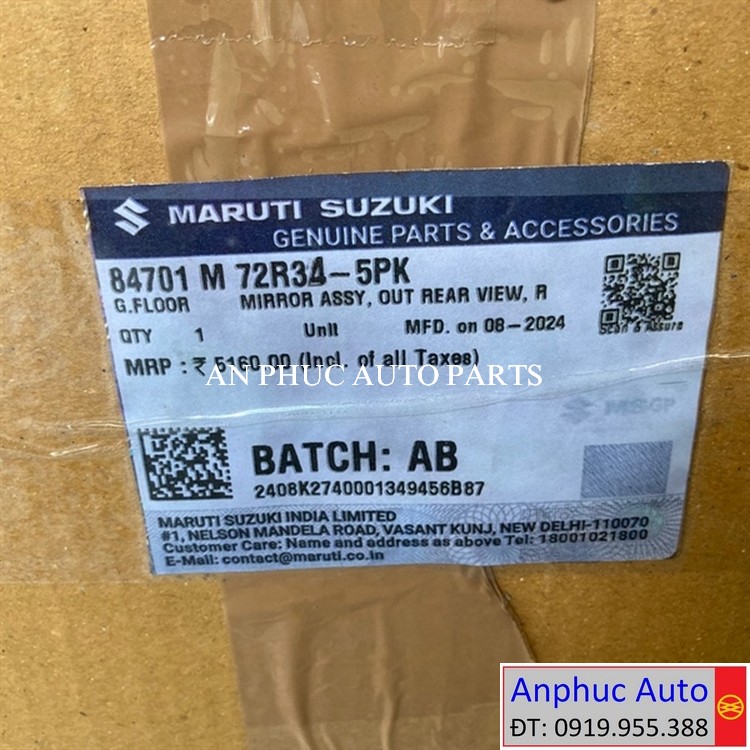 Cụm gương chiếu hậu Suzuki Ertiga chính hãng #Suzuki 84701-M72R30, 84701M72R30